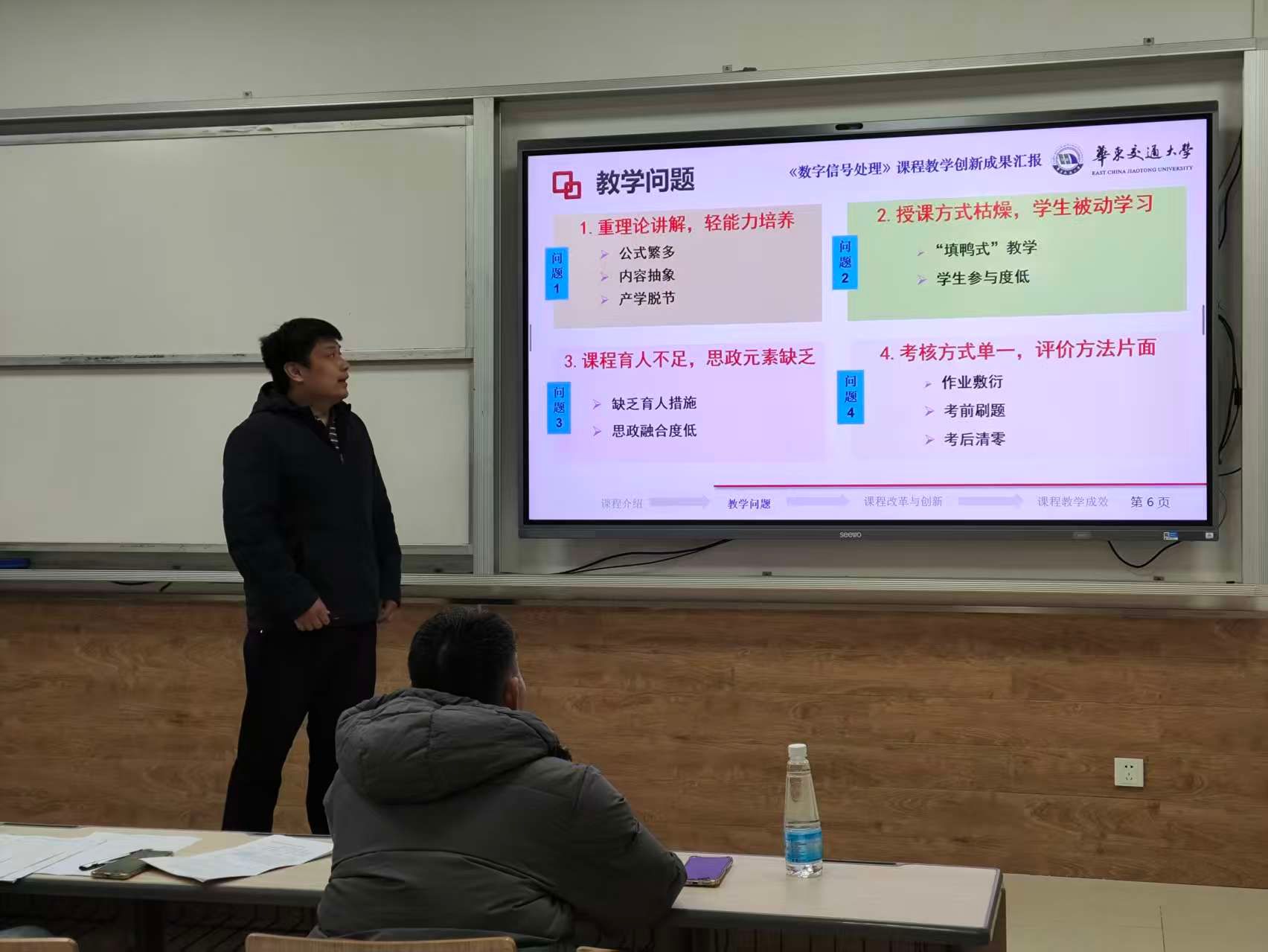 评委由校、院教学领域资深专家、院教学督导组专家共同组成,他们从教学理念与目标、教学内容分析、学情分析、课程思政、教学过程与方法、考评与反馈、设计创新等多个维度对选手进行了严谨公正的评分。评委们在答辩环节通过与参赛老师的互动,指出不足,鼓励优势。