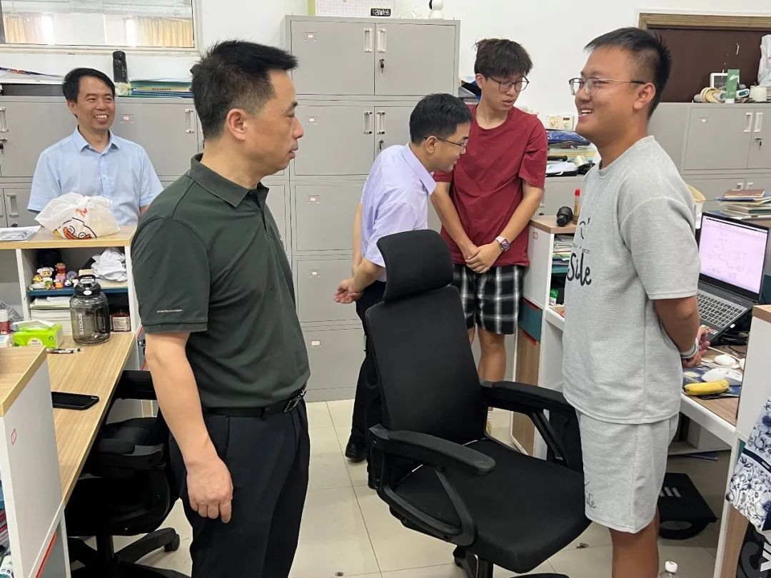为深入了解暑期留校研究生学习、科研与生活情况,切实落实假期学生管理与服务保障举措。7月18日上午,校党委委员、副校长肖乾,党委研究生工作部部长丁锋贵一行赴我院研究生工作室、实验室开展暑期留校研究生走访慰问,传递温暖与关怀。