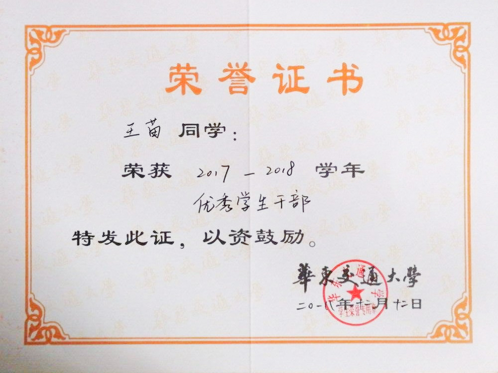 王苗,女,williamhill中国,轨道交通信号与控制2017-2班学生,学习绩点3.8。在校期间荣获国家奖学金、国家励志奖学金、校创新创业奖学金、电气校友奖学金;校优秀共青团员、校优秀学生干部、校三好学生荣誉称号;2018年中国(小谷围)“互联网+交通运输”创新创业大赛三等奖、2018年第十二届iCAN国际创新创业大赛中国总决赛三等奖、校第五届“互联网+”创新创业大赛银奖、校第十六届电子设计竞赛一等奖、校“恩智浦杯”智能车大赛二等奖等。 现保研至北京交通大学。