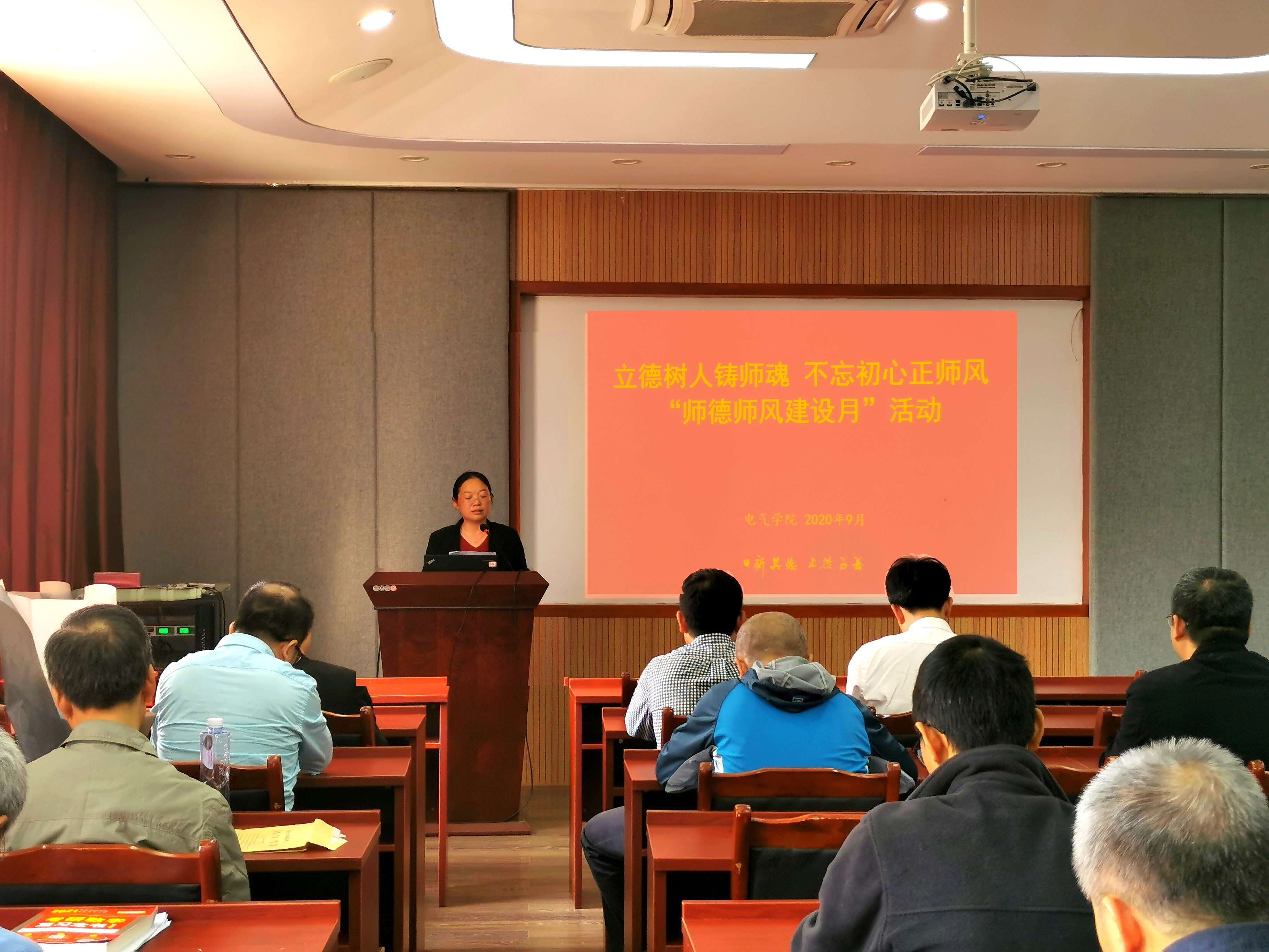 为进一步推进教职工职业道德建设,提高教职工教书育人水平,弘扬尊师重教社会风尚,9月24日下午,我院于电气楼顺利召开 “师德师风建设服务月”启动会议。电气学院党委书记赵敏主持会议,副院长韦宝泉、祝振敏,党委副书记刘修财及全体教职工参加会议。