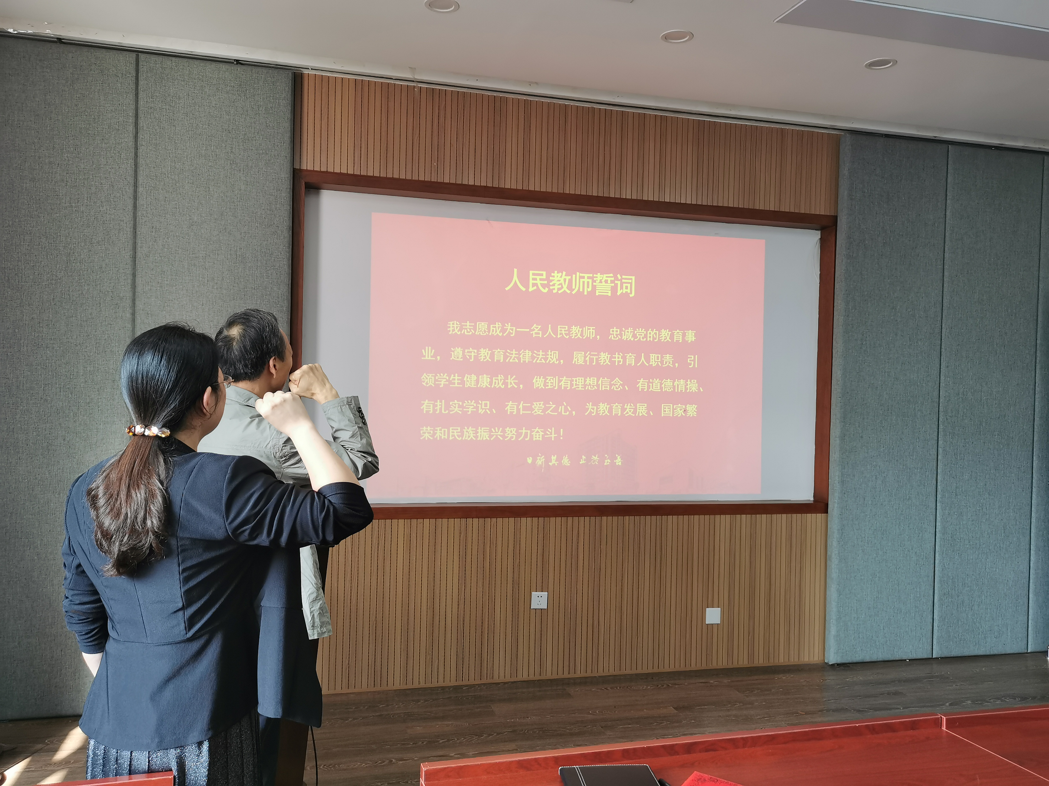 会议最后,由王勋教授领誓,全体与会人员共同宣读《人民教师誓词》,本次会议圆满落幕。