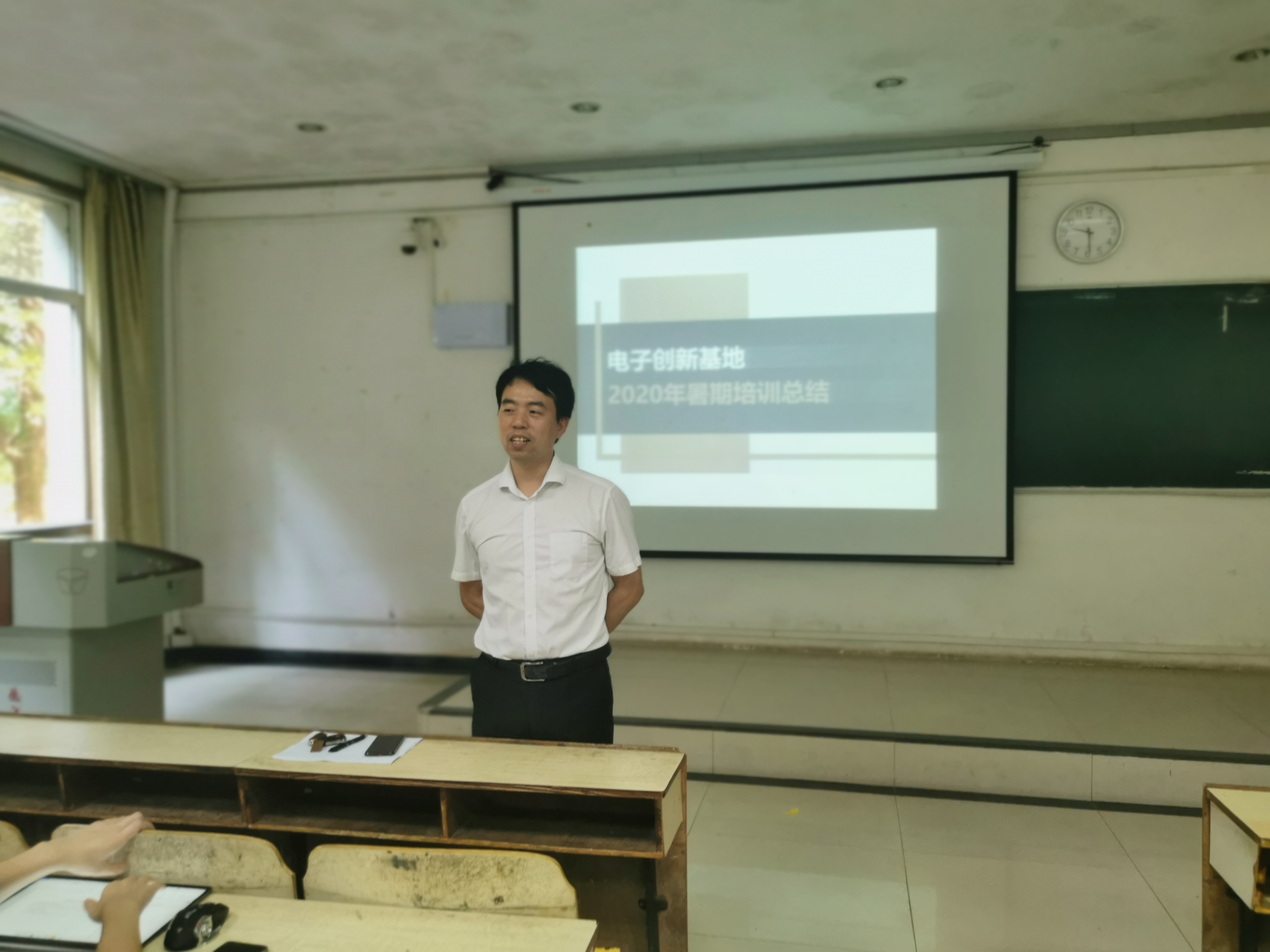 8月15日,杨云老师带队的电子创新基地暑期培训于电气楼开展结课总结会,院党委副书记刘修财出席会议。