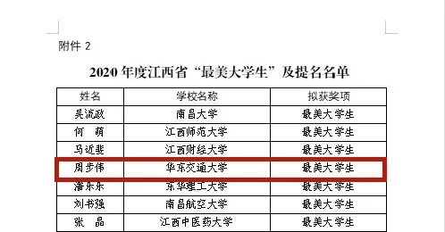 我院学生周步伟获得2020年度江西省“最美大学生”荣誉称号。