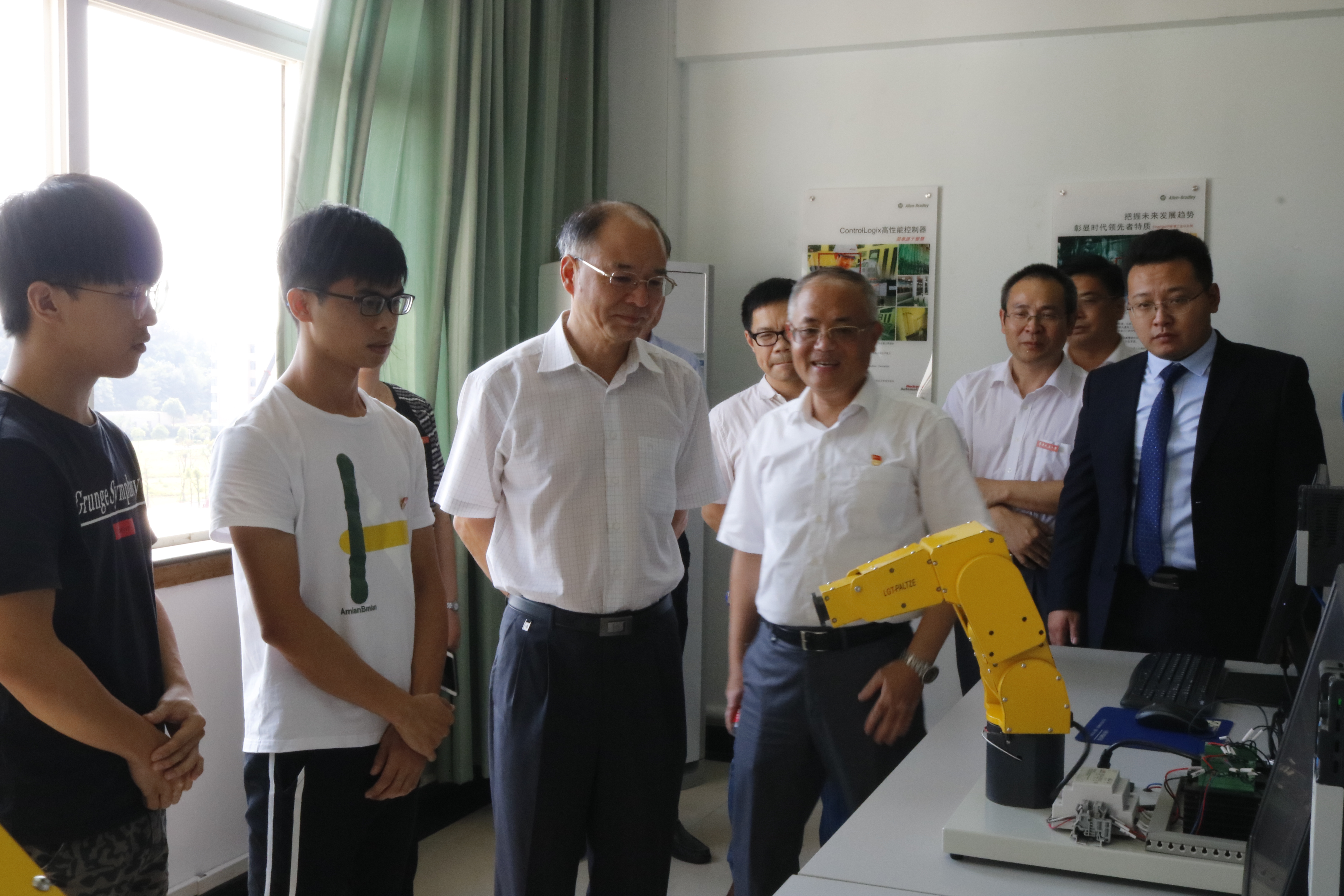 实验室正式落成后,由我校优秀学生代表关凯丰带领学校领导参观了罗克韦尔实验室。此次合作为我校自动化人才培养提供了有利条件,为我校教师提供了重要的科研平台,同时也助于提升罗克韦尔自动化有限公司的行业影响度,是学校和企业实现共赢的一项重要举措。