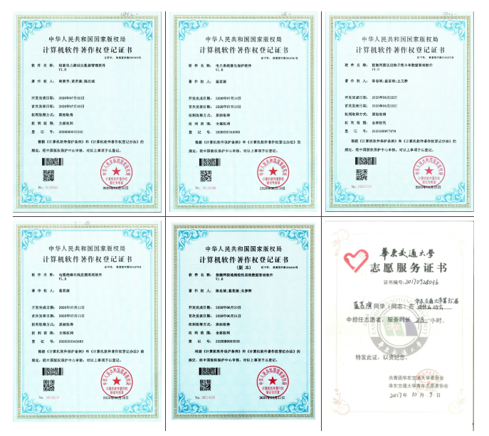 在科研方面,曾获2019-2020学年第十三届iCAN国际创新创业大赛中国总决赛二等奖和江西赛区一等奖,2019-2020学年计算机软件著作权登记证书:电缆绝缘在线监测系统软件V1.0,2019-2020学年计算机软件著作权登记证书:电力系统继电保护软件V1.0,2019-2020学年计算机软件著作权登记证书:接触网雷达巡检手推小车数据管理软件V1.0,2019-2020学年计算机软件著作权登记证书:线索张力测试仪数据管理软件V1.0,2019-2020学年计算机软件著作权登记证书:接触网接地线检报系统数据管理软件V1.0。