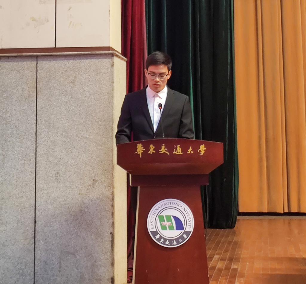 田径队原队长、体育先进集体代表邓爱斌上台发言,他表示,本次校运会我院取得田径项目和团体总分双第一的傲人成绩,荣誉的获得离不开学院各运动员的刻苦训练、团结拼搏,离不开学院的大力支持和领导老师的关心。此外,他回忆了在此次运动会上以黄海文和江浩为代表的电气运动员勇于拼搏、敢打敢拼、坚持不懈的优秀事迹,并对电气田径队的发展提出了规划和展望。