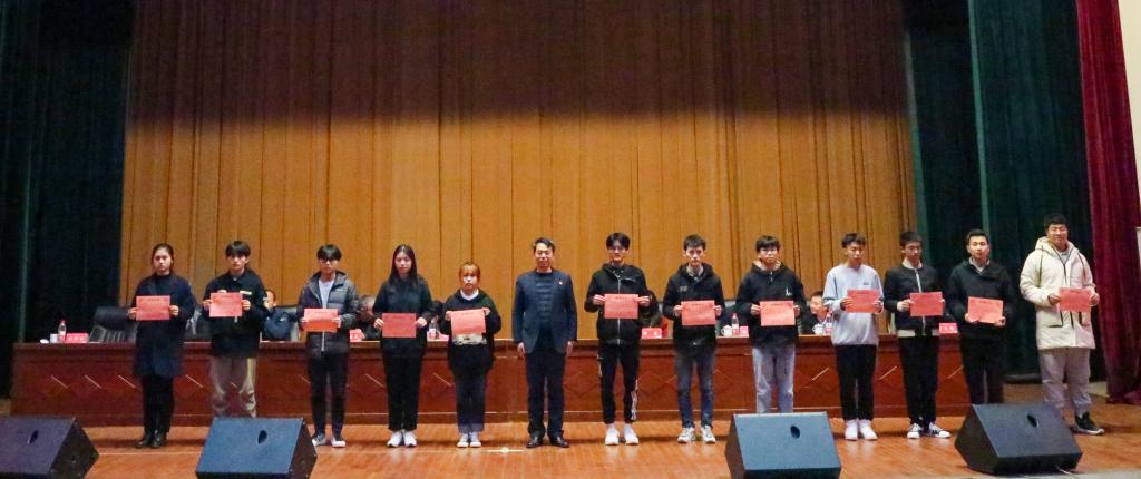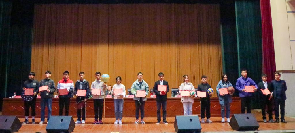 会议伊始,徐雪松宣读了关于表彰2020年度优秀体育集体及个人的决定,赵敏向捐赠方代表陈志武颁发捐赠证书,并对季礼等10名“十佳运动员”荣誉称号获得者进行颁奖,陈志武对刘玉等11名“体育奖学金”获得者颁奖并合影留念。大会同时授予田径队等8个运动队“体育先进集体”荣誉称号,符聪等20名同学“优秀运动员”荣誉称号,方宏飞等12名同学“优秀体育工作者”荣誉称号,左健等6名老师“优秀指导老师”荣誉称号,王健乐等11名同学“优秀教练员”荣誉称号,男子篮球队等4个运动队“团体贡献奖”,院学生会等8个集体“最佳组织奖”。