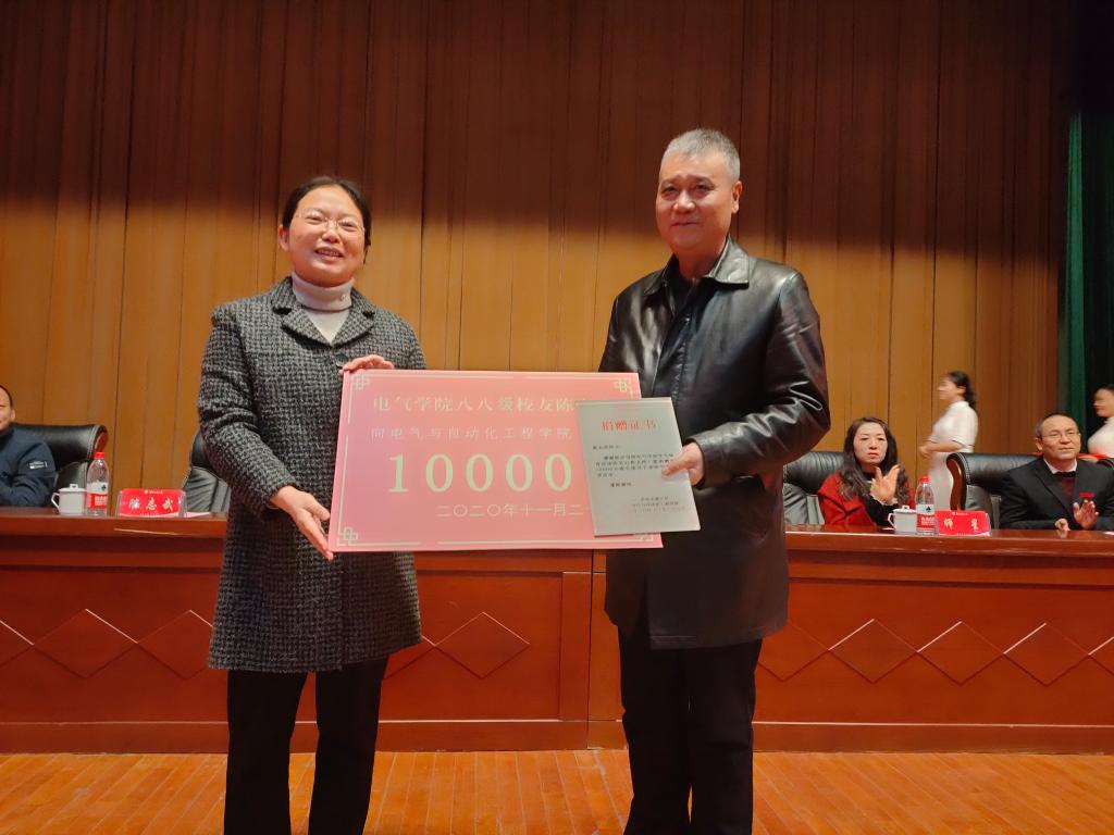 (赵敏向捐赠方代表陈志武颁发捐赠证书)