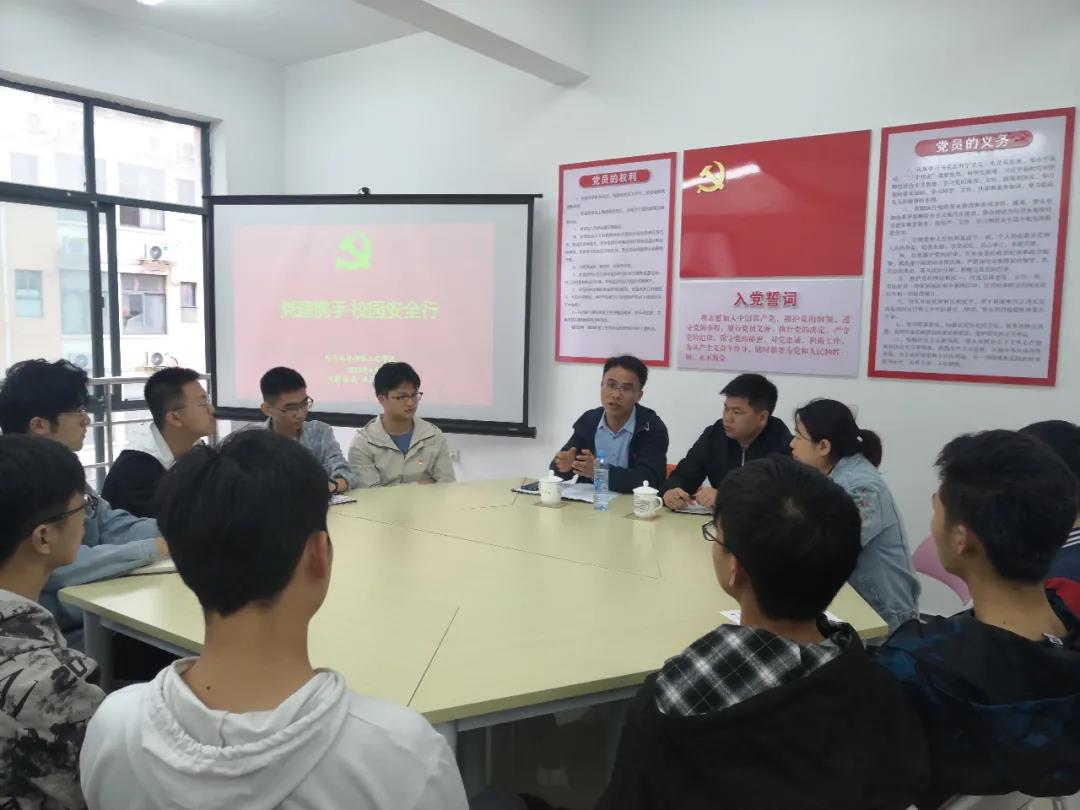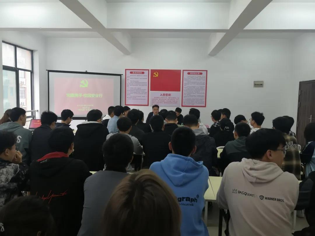 为进一步落实我院党史学习教育工作,加强学生安全防范意识,4月14日下午,电气学院在学23栋举办“党建携手,校园安全行”主题安全讲座。校保卫处副处长王迪旻、校保卫处杨国金、电气学院党委组织员武婷婷出席本次讲座。