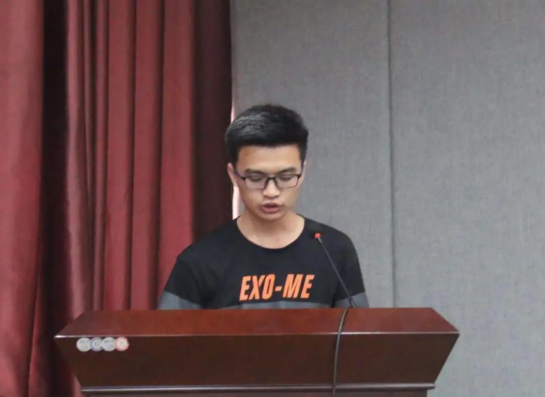 18级电牵5班的郑培文代表全体受助学生发言。他用“敢于造梦,勇于追梦,勤于圆梦”表达了对宁波福尔达智能科技股份有限公司诚挚的谢意,以及对辛勤培育我们的学院领导,老师崇高的敬意与感激之情。