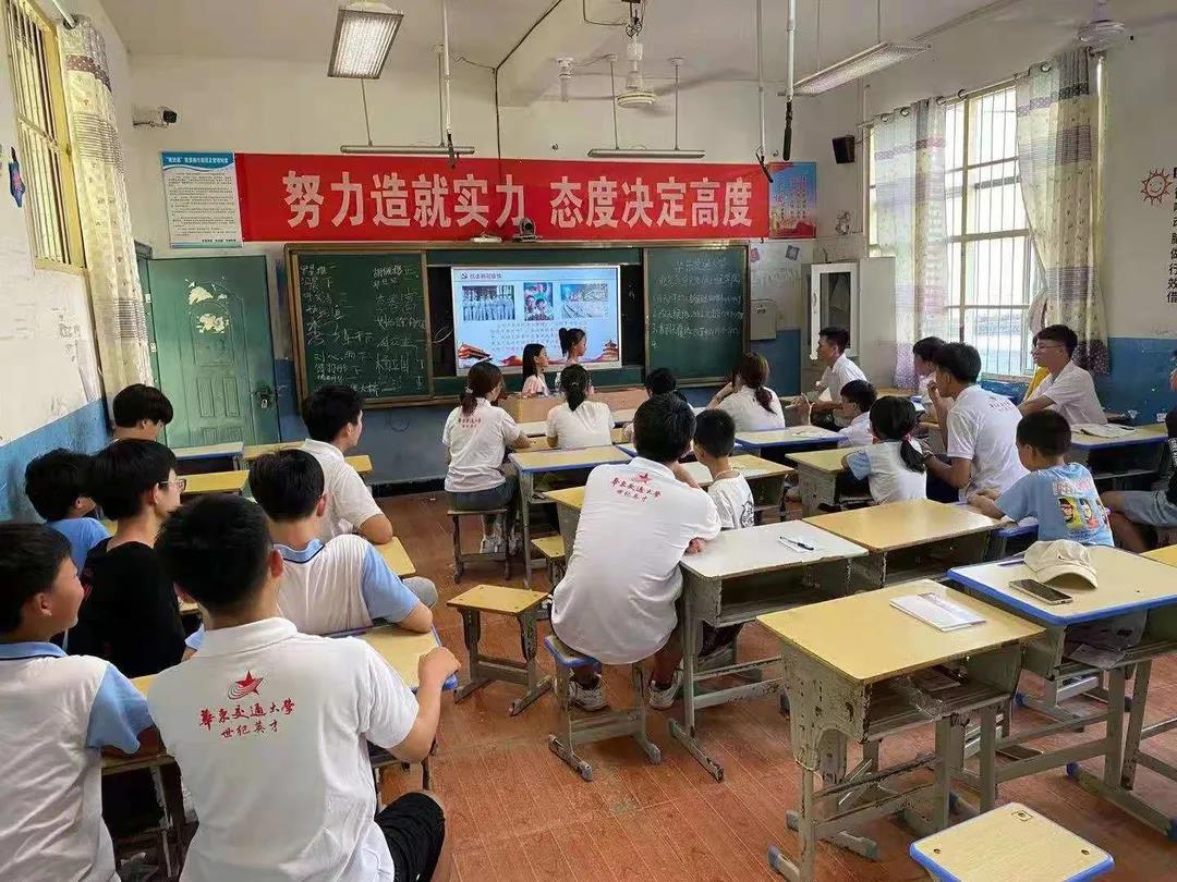 下午,教学组队员向新篁学校的中小学生们集中开展党史宣讲,以党的百年光辉历史为主线,讲述第三篇章“翻天覆地”和第四篇章“惊天动地”的党史学习内容。详细介绍了从1978年改革开放至2012年十八大召开期间,奋斗在全国各地、各行各业的时代先锋们顽强拼搏的风采,以及中国共产党如何通过“一带一路”方针将中华优秀传统文化传播到五湖四海。与此同时,服务组队员积极参与学校的卫生打扫、桌椅摆放、书籍整理、垃圾分类等志愿服务活动,教室里、走廊上和楼梯间都能看到队员们忙碌的身影。