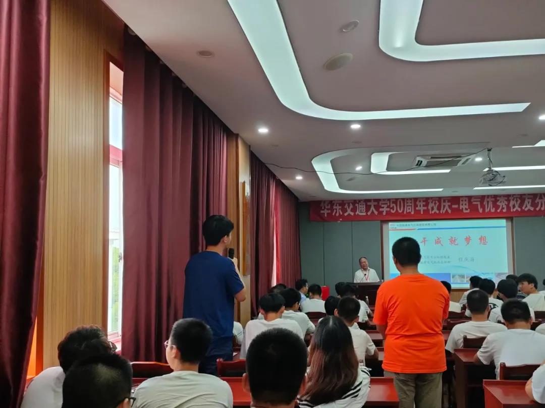 在交流互动环节,针对同学们提出的对铁路行业未来30年发展情况的疑问,程庆海表示,无论是高铁还是地铁,未来的发展前景都很广阔。铁路是国家的战略性、先导性、关键性重大基础设施,在经济社会发展中的地位和作用至关重要,因此电气化专业学生就业前景十分可观。对于临近毕业的师弟师妹们有关找工作的问题,程庆海提出建议:树立切实可行又能激发潜能的目标,科学合理规划未来生涯,脚踏实地走好每一步,遵纪守法尊重客观规律,勇于创新敢于受挫,心怀感恩诚信做人,一定能有所成就。