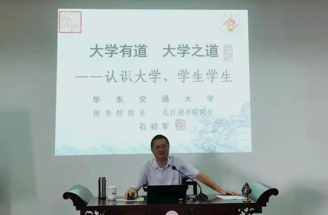 讲座伊始,石初军以“何谓道”的问题深入浅出,向在座各位同学简述了“道”的基本含义——“所行之道,可行之道路”。“道”是万物本源,不会以人的意志为转移。大学课程的每一个知识点、生活的每一个技能都有其蕴含的“道”,都是我们去认识世界运转规律的的道路。