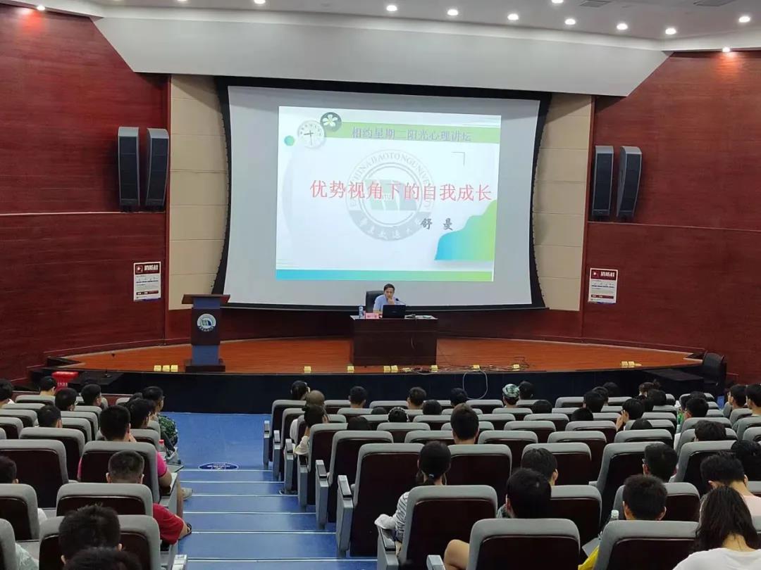 微风徐徐,秋意渐浓。为使我院新生能够以积极向上的心态面对生活,在大学中发掘自身潜力,发挥个人优势,10月9日晚,在北区图书馆圆形报告厅内,我院2021级电子信息工程专业全体新生参加了舒曼老师的“优势视角下的自我成长”心理讲座。