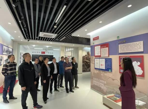 跟随讲解员的引领,全体人员依序参观各个展厅,详细了解和回忆学校在各个历史阶段治学办校的发展历程。从老旧的照片、文件和详尽的讲解中,追溯扎根红土地的前辈们开启的艰苦卓绝的建校之路;追忆一代代“华交人”初心不改、接续奋斗成就的巍巍学府三千亩、廿万英才遍九州的蔚然大观;感叹学校办学层次十年一跨越,形成了本硕博贯通、交通特色鲜明的人才培养体系的巨大成就。