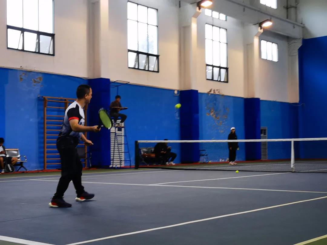 行百里者半九十,取得这样的成绩离不开队员们在平日里的刻苦训练。赛前两个月,为了达到更好的训练效果,适应比赛节奏,网球队每周集开展2-3次集训,每次训练3小时左右,国庆假期内组织参赛师生重点就定点击球、动点击球、对打等内容加强训练;如果遇到下雨天,队员们则坚持在室内做体能训练。“风采在赛场,功夫在平时,在训练当中不能轻易说放弃,不能轻易说不行,只有拼尽全力最后过终点线,才能获得成功”,参赛选手楚云鹏说道。