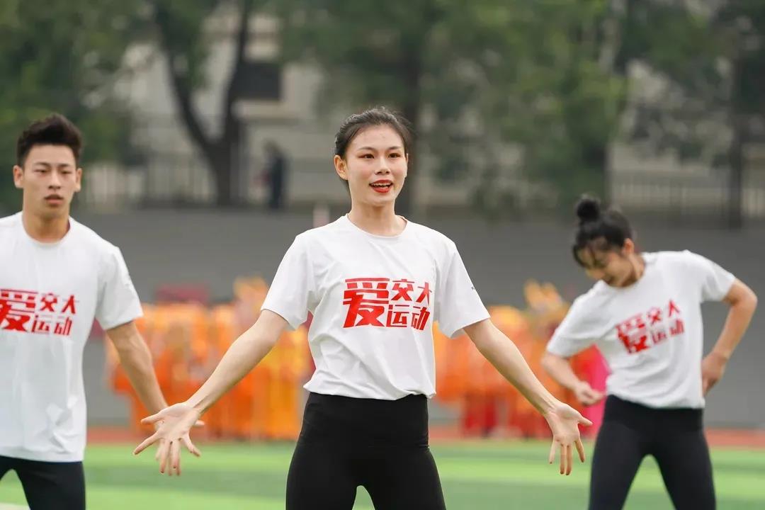 音乐响起,开幕式表演健美操在田径场上开始了,青春的律动带动着交大青年的步伐,自信的舞步舞出了华交人的激情热血。