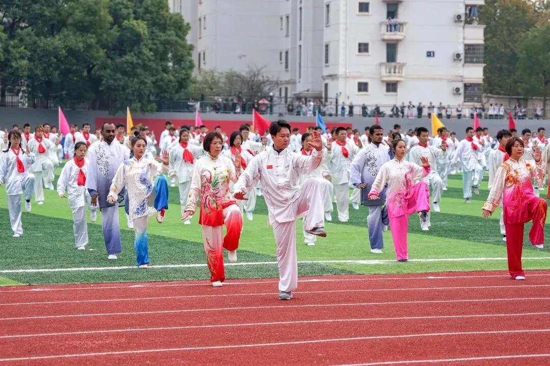 群龙散场,一袭白衣举步生风,他们是太极队队员,只见拳脚之间,招式如行云流水,身形如若水蛟龙。大道太极显神功,腾挪闪展俱轻灵。刚柔并济,运化无方。力道收放,皆在霎那间。至此,本次开幕式到此结束,各比赛项目正式开始。