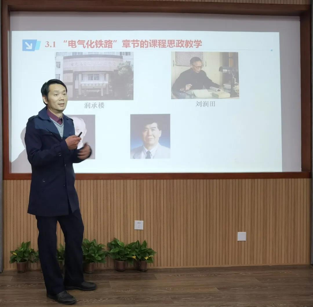 电牵教研室张建辉老师针对《交通概论》中“电气化铁路”章节内容,巧妙设计思政内容,从我校电气化专业创始人刘润田开始,逐一讲述了我国电气化第一人曹建猷等老一辈铁路专家突破国外技术封锁、自主创新、科技报国的家国情怀,激发同学们学习专业课的热情。