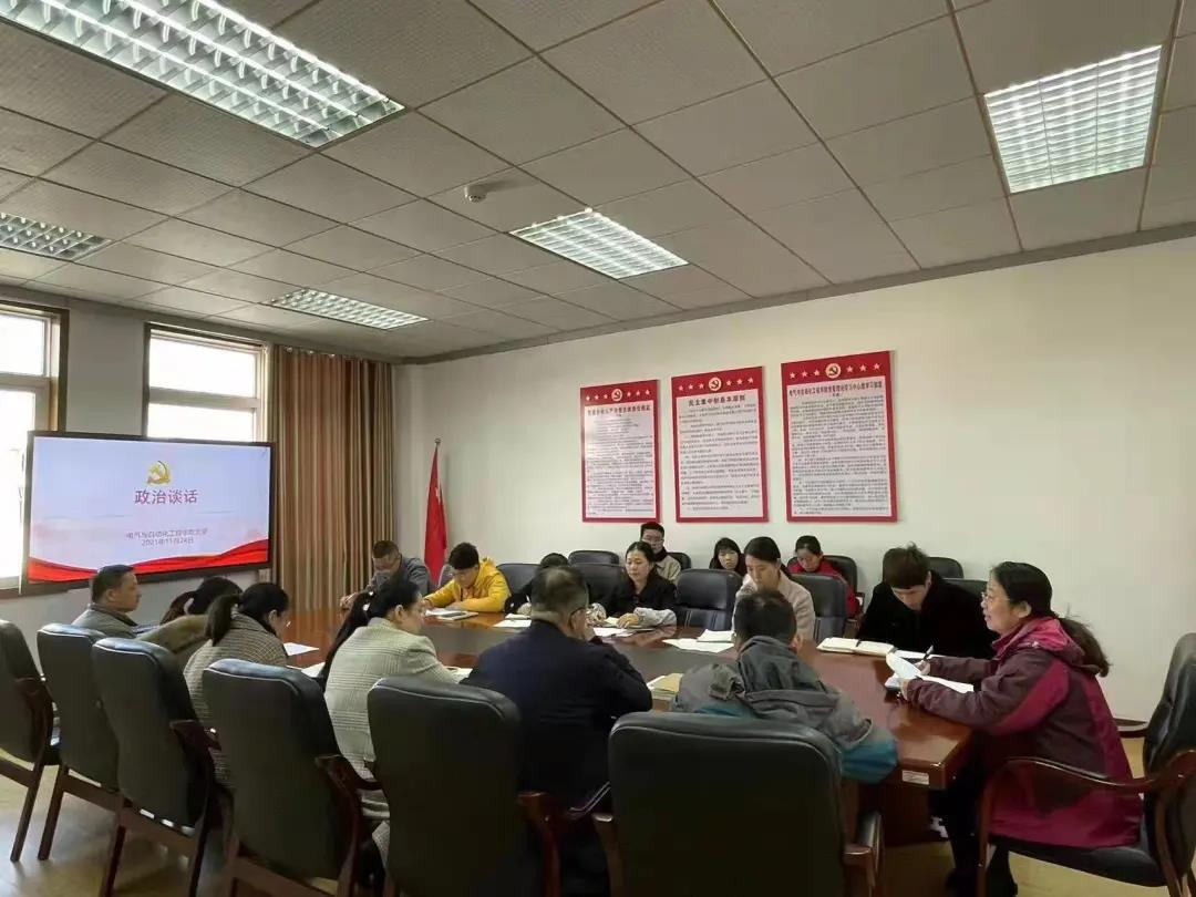 11月24日,电气学院党委开展基层党支部书记集体政治谈话,谈话由学院党委书记赵敏主持。