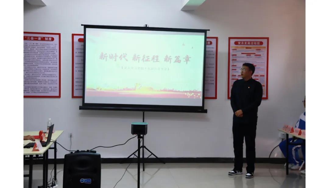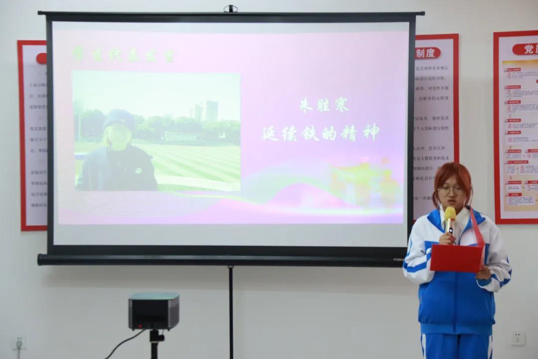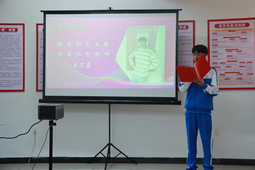 班长王宁嘉作为老红军的后代,用曾祖父抗美援朝的热血故事歌颂共产党员的为民情怀;用祖父在恶劣环境观察气象的难忘经历谱写共产党员的献身精神;他表示会用自己的实际行动积极向党组织靠拢,传承红色基因、赓续红色血脉。
