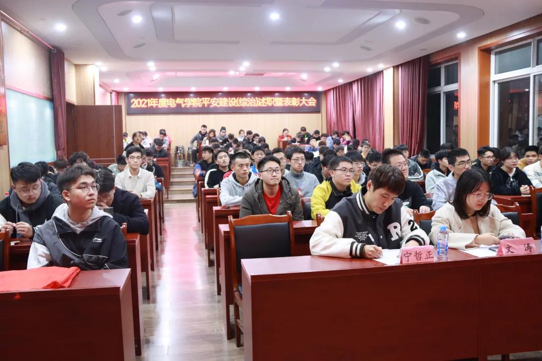 为进一步完善电气学院综合治理工作,明确学院综治工作任务,充分认识校园综合治理工作的重要性,同时表彰在综治方面有突出表现的班级团体和个人。12月7日晚,我院于教十栋403会议室举办2021年度电气学院平安建设(综治)述职暨表彰大会。电气学院学工办主任兼团委书记文涛,电气学院学工办副主任兼团委副书记宁哲正出席本次大会,各班级班长、生活委员参会。
