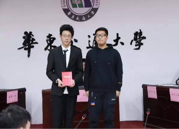 电气学院学生会主席朱宇萌为舒子轩 田家兴颁发最佳评委奖