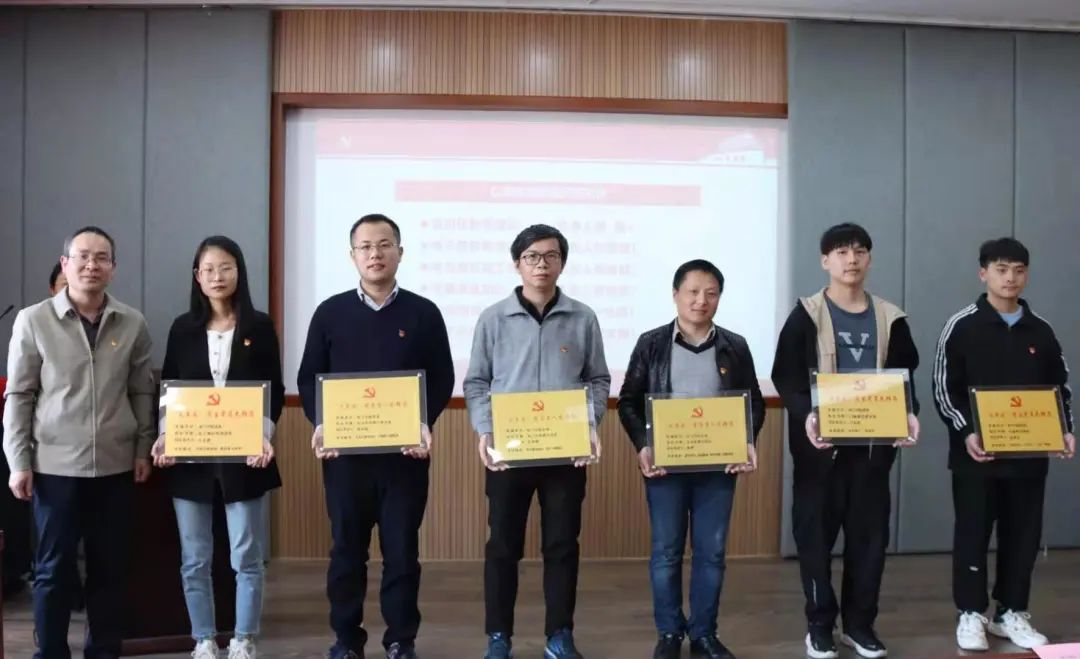 院党委委员韦宝泉为火车头”党员育人先锋岗个人颁发标牌