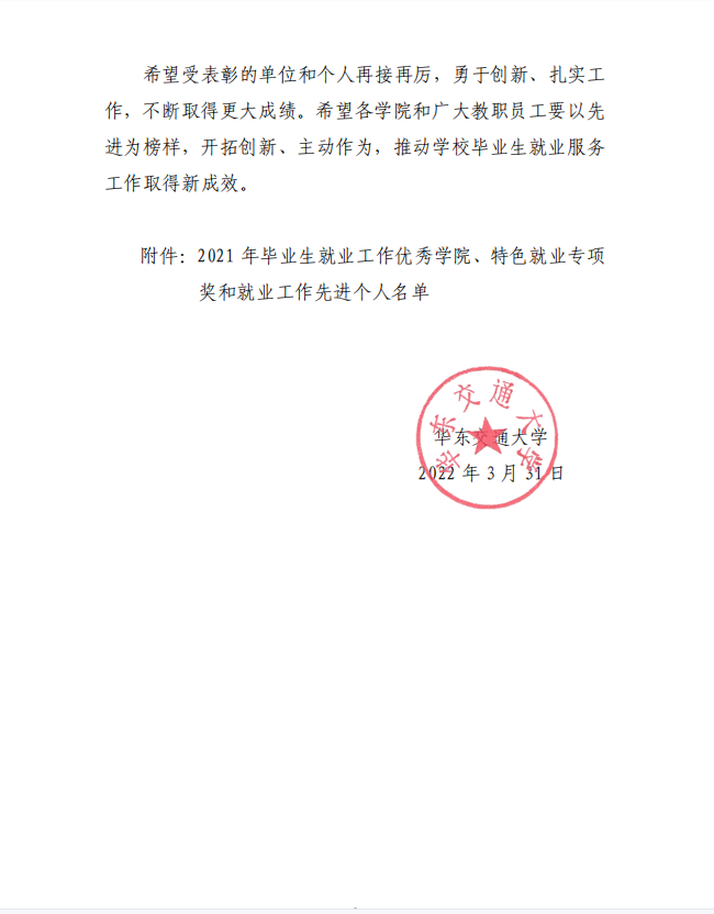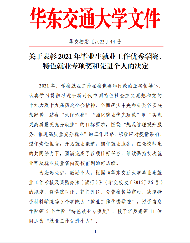 为表彰先进、激励个人,根据《Williamhill威廉希尔毕业生就业工作考核及奖励办法(试行)》(华交校发〔2015〕26号)的规定,经学院自评、部门评议、分管校领导审批,我院获评2021 年度“就业工作优秀学院”,柴先琳老师获评“就业工作先进个人”。