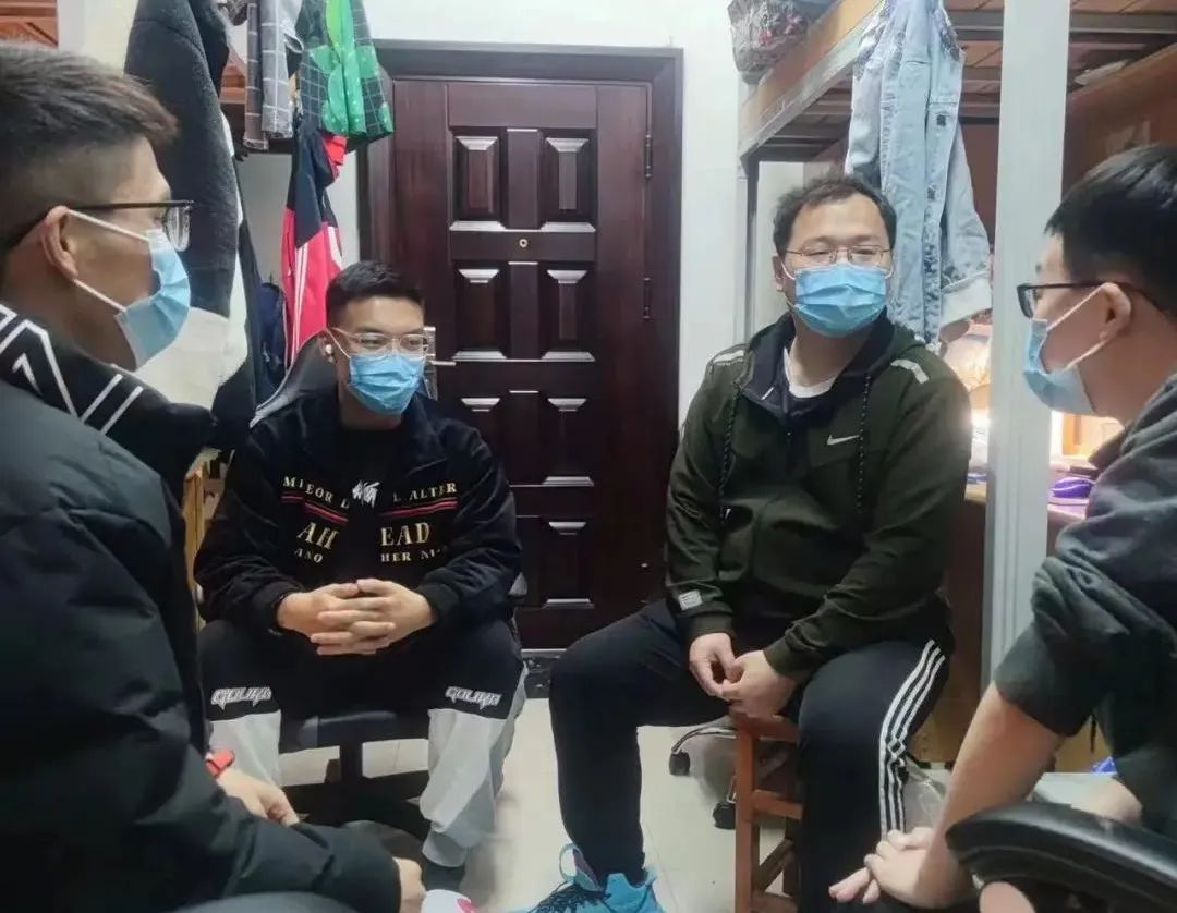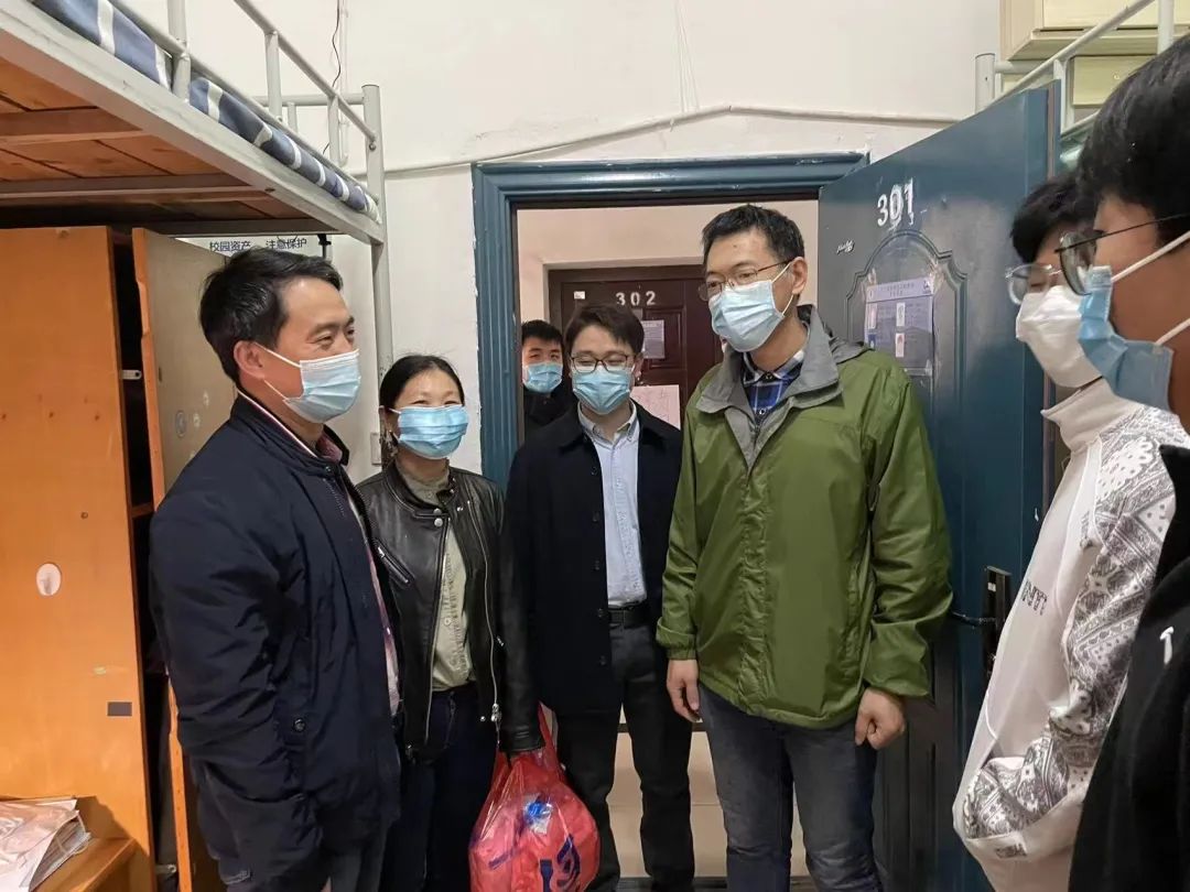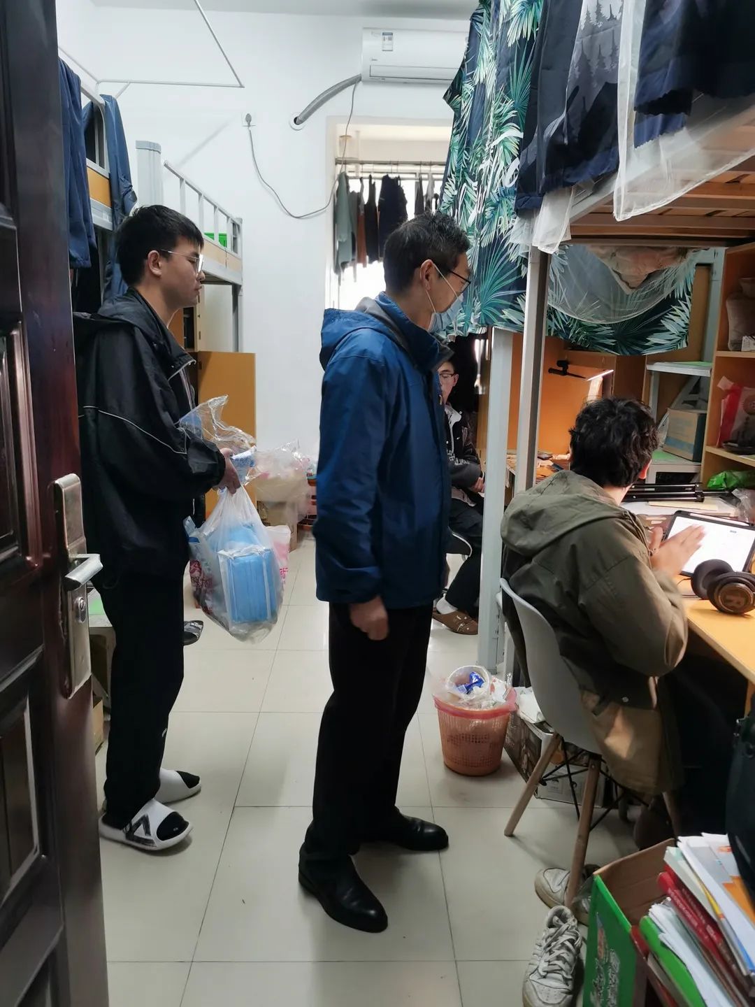 4月16日,学院班主任举行集体暖心走访活动。34名教工党员及部分研究生党员走入学生宿舍,了解学生核酸检测情况,提醒同学们注意个人疫情防护和宿舍卫生安全,并为同学们分发口罩。