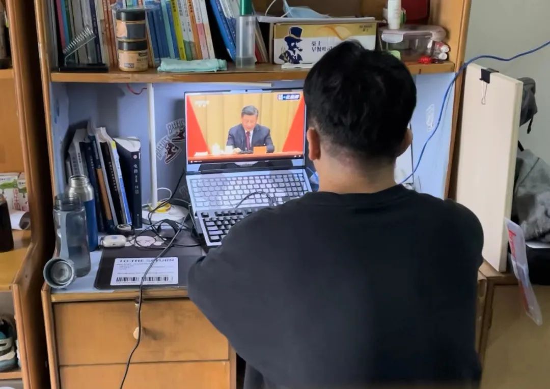 2022年5月10日上午,电气学院组织师生在教十栋403观看庆祝中国共产主义青年团建立100周年大会。