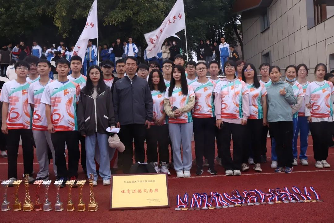 10月28日下午,Williamhill威廉希尔第三届运动会暨第四十届田径项目比赛在南区田径场顺利闭幕。我院运动健儿在此次校运会上表现突出,再次斩获田径项目和非田径项目比赛总分双料冠军,团体总分第一名,实现了校运会三连冠!同时获评体育事业突出贡献奖、体育道德风尚奖单位。