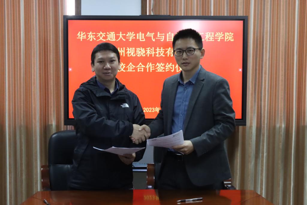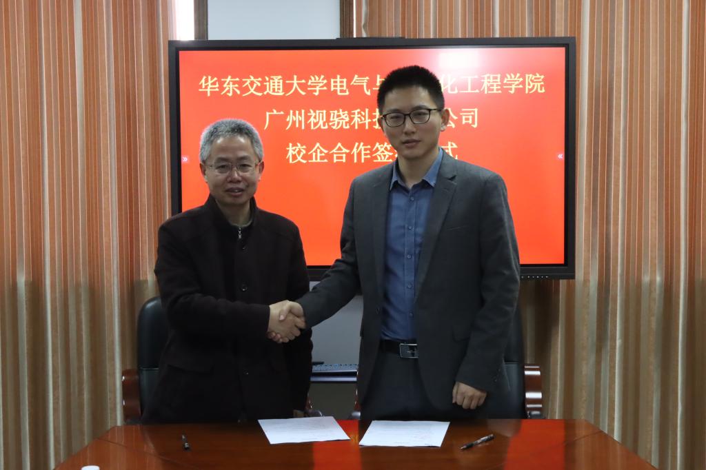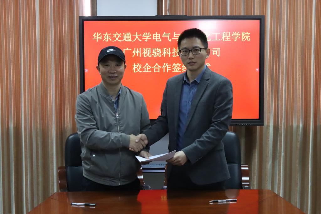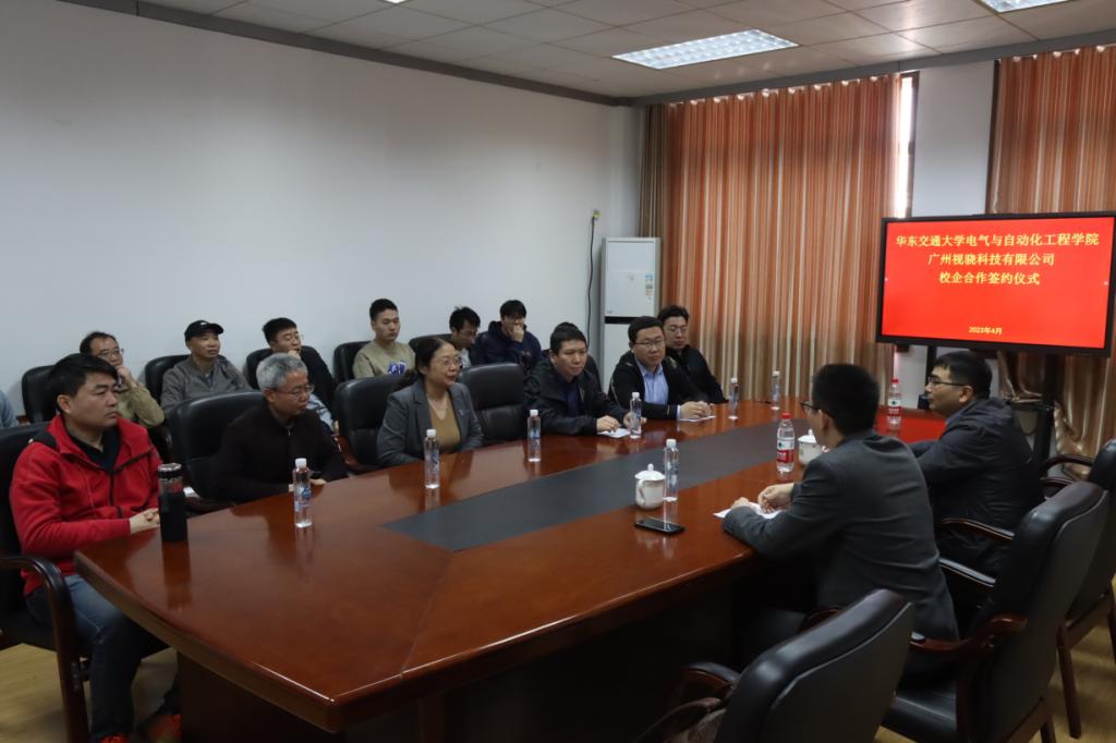 4月7日上午,电气学院与广州视骁科技有限公司于教10栋402会议室举行校企合作签约仪式。电气学院院长李泽文,党委书记赵敏,副院长韦宝泉以及广州视源科技有限公司总工寇敏,广州视骁科技有限公司研发总监罗峰出席活动。学院部分教师代表参加活动。
