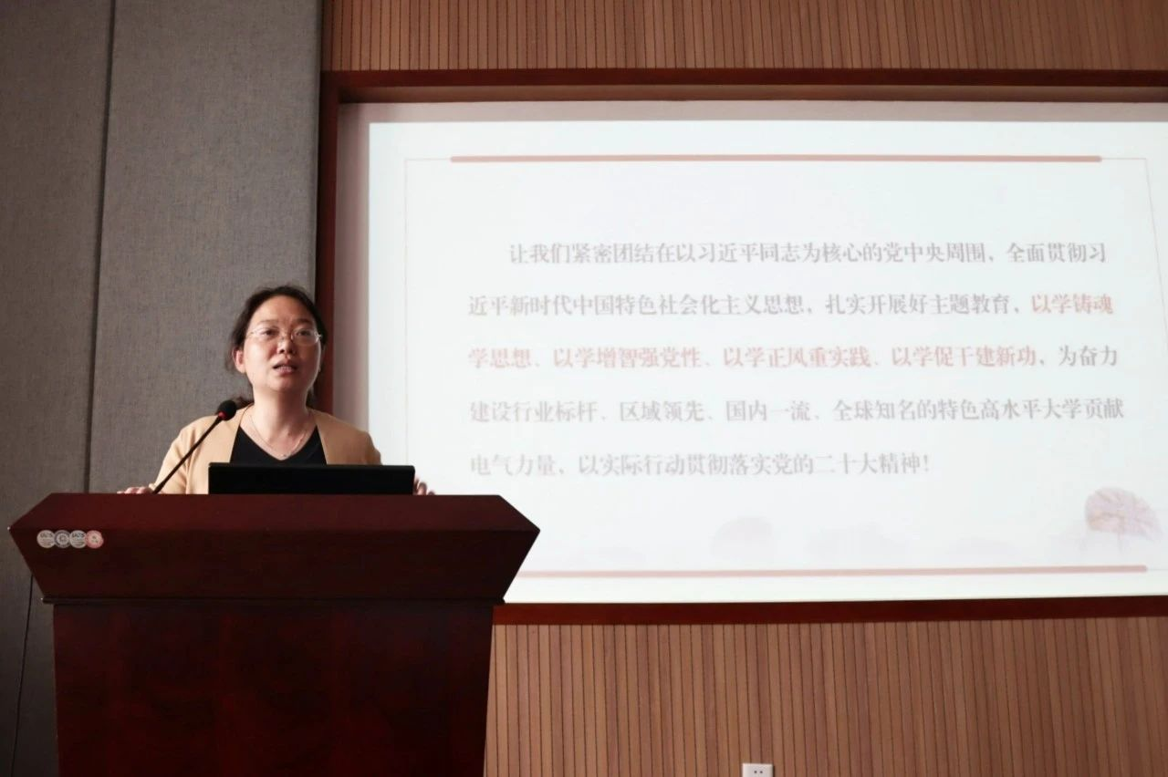 赵敏强调,全体党员、干部要紧密团结在以习近平同志为核心的党中央周围,扎实开展好主题教育,以学铸魂学思想、以学增智强党性、以学正风重实践、以学促干建新功,为学校奋力建设成为行业标杆、区域领先、国内一流、全球知名的特色高水平大学贡献电气力量,以实际行动贯彻落实党的二十大精神。