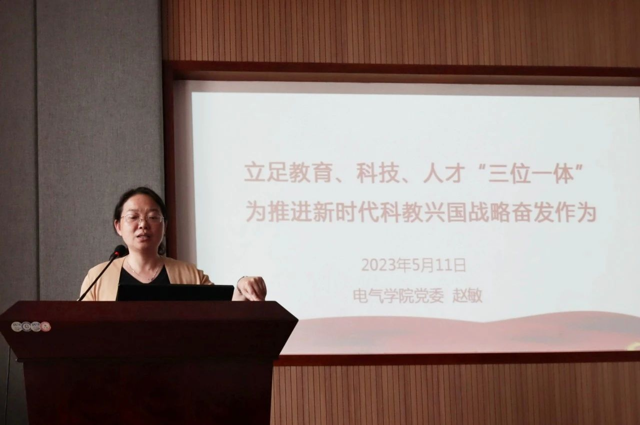 5月11日下午,学院党委书记赵敏以“立足教育、科技、人才‘三位一体’,为推进新时代科教兴国战略奋发作为”为题,为全院教职工讲授专题党课。