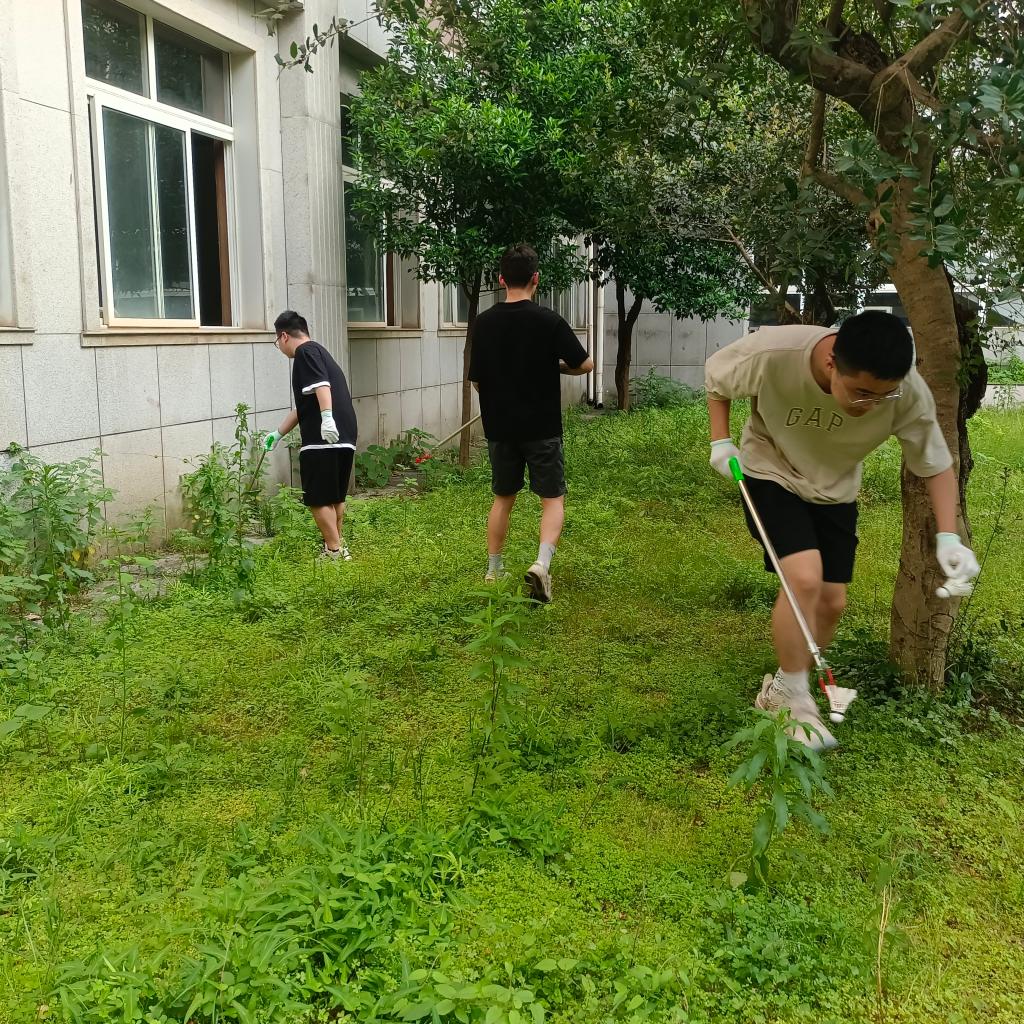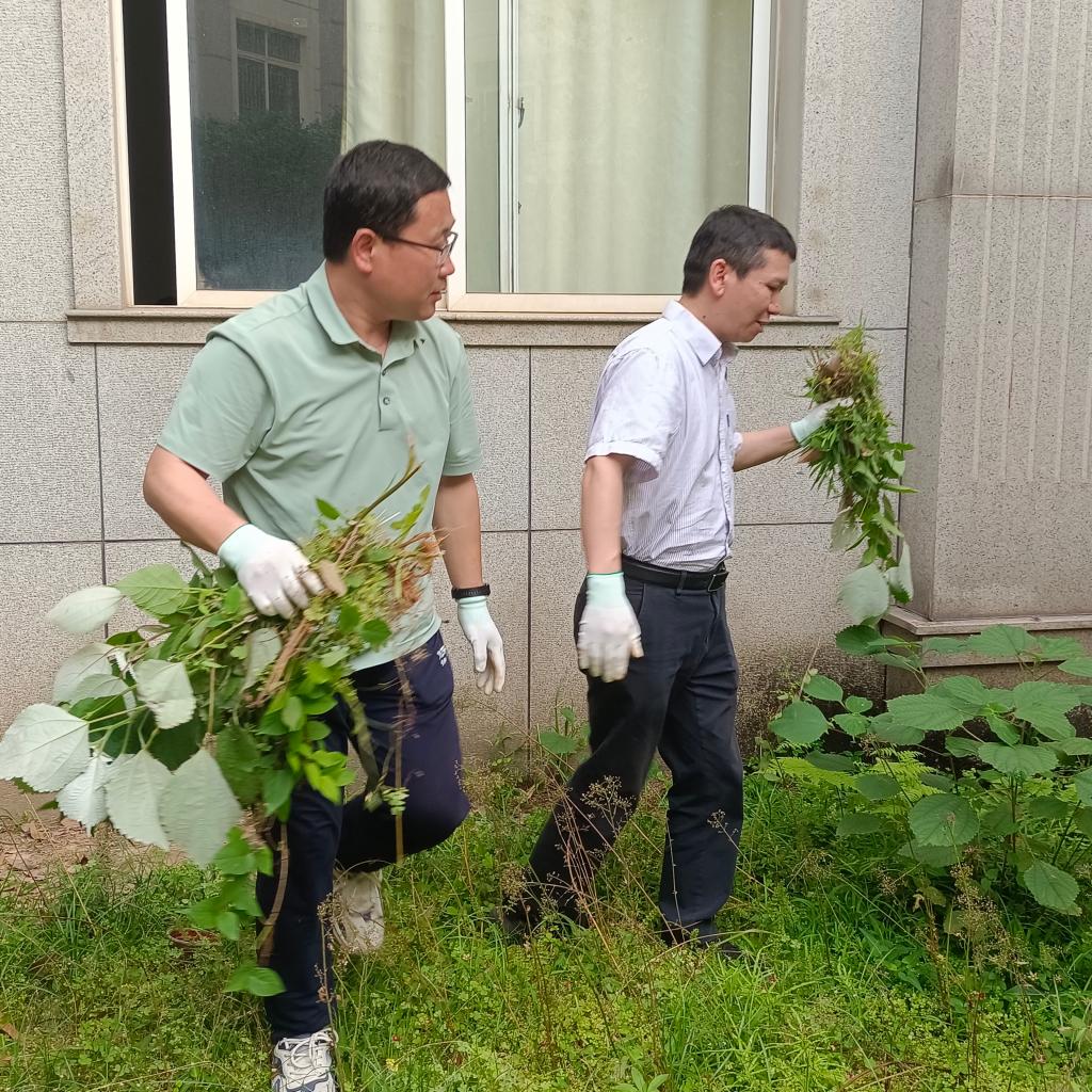 学院领导和党员师生一起拿起铁钳、带上手套在日涉园中拔草除杂,大家热情高涨,干劲十足,没有丝毫懈怠。由于雨水丰沛,各种杂草长得多而密,且面积广泛,给拔草带来了一定困难,但是党员师生们不怕苦、不怕累,耐心仔细地清除着地里的杂草。众人拾柴火焰高,在大家的努力下,杂草很快被清除,日涉园从最初一片杂草蔓生变得整洁干净。