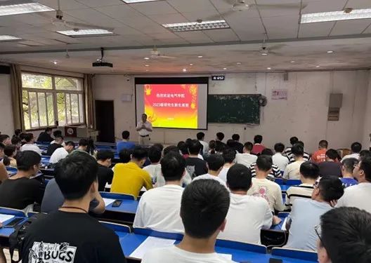 新起点、新生活、新征程!为欢迎2023级研究生新同学,帮助新生们尽快适应研究生生活,9月5日下午,我院于电气楼113教室召开2023级研究生新生见面会暨“开学第一课”主题班会,出席会议的有:学院副院长徐雪松、研究生秘书彭书祺和谢冰新、研究生辅导员程婷以及2023级全体研究生。