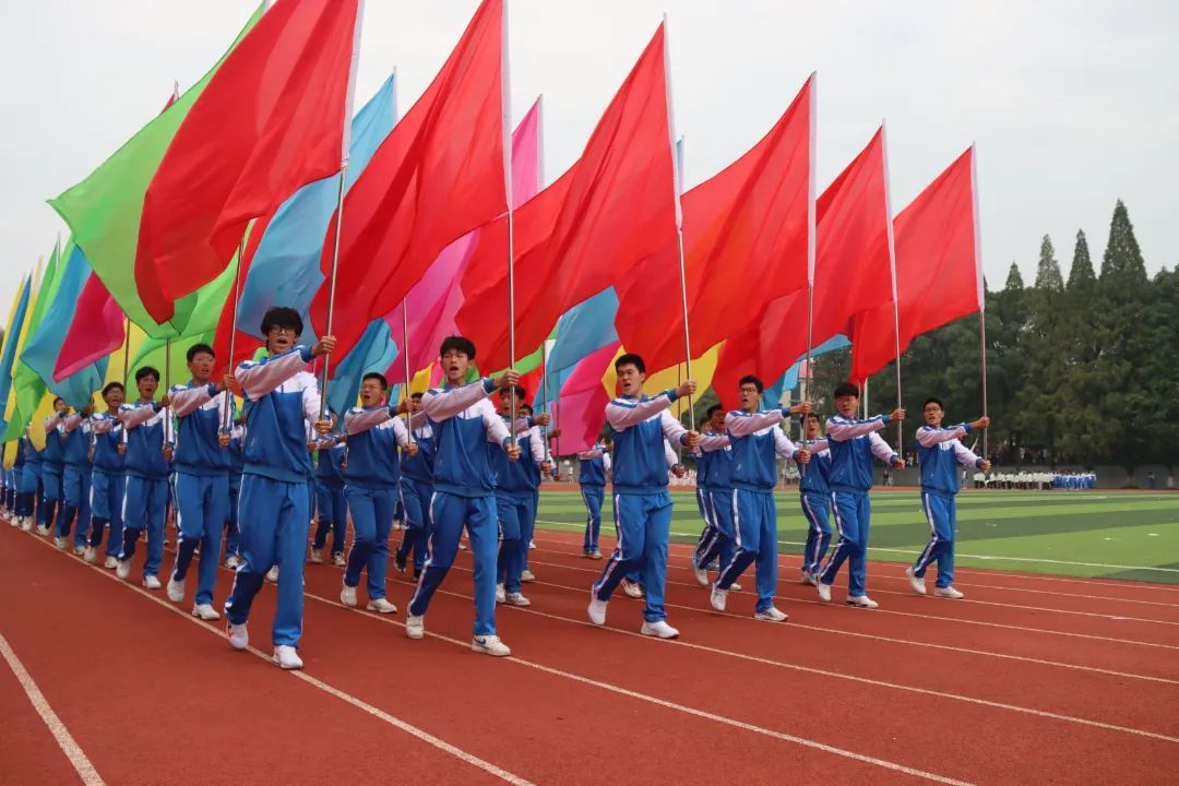 彩旗飘扬,色彩斑斓。由我院学生组成的彩旗队手持彩旗高高举起,迎风展扬。高扬的彩旗犹如翩翩起舞的彩蝶,展现出无限活力与如火激情,时间仿佛在此刻凝固,每一帧都如艺术作品一般,热情而自由。