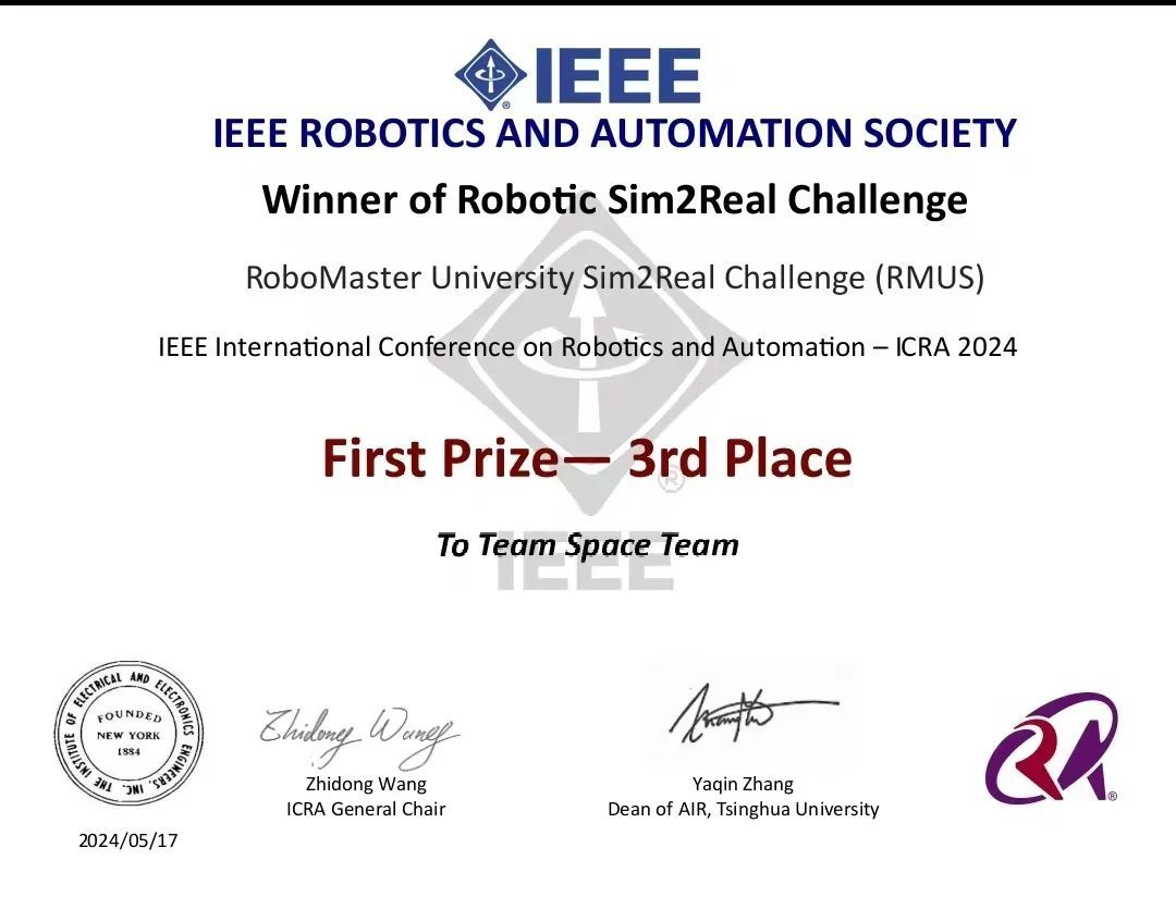 近日,ICRA 2024 RoboMaster机甲大师高校Sim2Real挑战赛(RoboMaster University Sim2Real Challenge,简称RMUS)总决赛在北京顺利闭幕。Williamhill威廉希尔电气学院电子创新基地的参赛队伍,包括唐大康、隗洋洋、盛子文、王鹏举、叶新铖五位同学,在杨云老师的带领下,与来自天津大学、中国科学院大学、哈尔滨工业大学(深圳)、东北大学、北京理工大学、等117所名校学子展开激烈角逐,首次参赛表现优异荣获第三名,获得本次竞赛的一等奖。