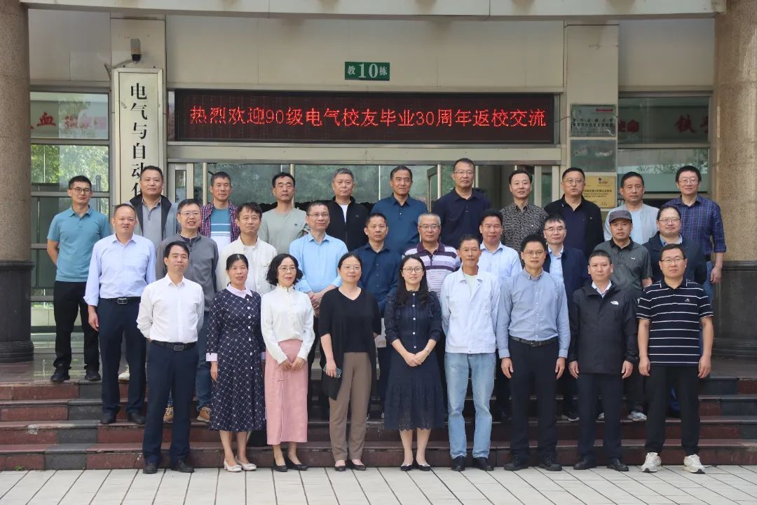10月19日,Williamhill威廉希尔电气学院1990级电气化、电牵校友在教10栋403会议室举行毕业三十周年返校座谈会。来自五湖四海的校友再次重聚,回望青春岁月、重温同窗深情、憧憬美好未来。校党委副书记罗文俊,校对外联络处副处长、校友工作办公室副主任吴亮秦,电气学院院长李泽文、党委书记赵敏、副院长韦宝泉、副书记刘修财、对外联络办公室主任曾建军,1990级电气化、电牵校友代表,电气学院教师代表等出席本次座谈会。