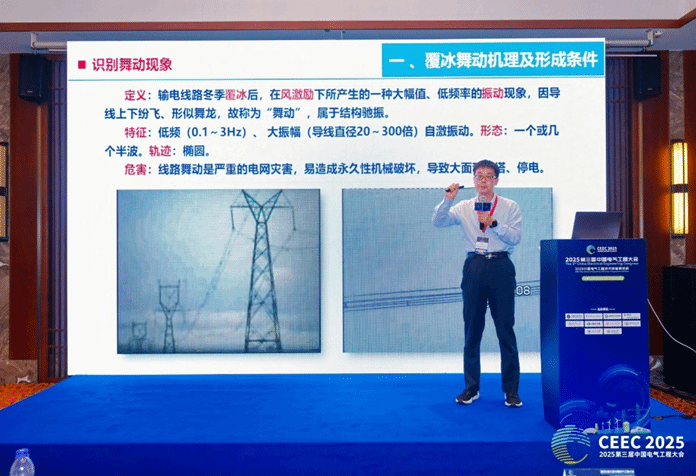 国网电力工程研究院有限公司刘彬教授级高工作了题为《架空导线覆冰舞动研究进展》的报告,指出“覆冰导线在风载作用下引发的低频大振幅舞动是威胁电网安全运行的重要致灾因素,其本质为气动负阻尼导致的非线性失稳振动。提出了以“改变气动载荷、覆冰条件与结构参数”为核心的防舞技术体系,研发并应用了扰流防舞器、相间间隔棒、双摆防舞器等多类防舞装置,有效抑制了导线舞动幅度与能量积聚。面对极端气候频发的新常态,研究进一步强调应构建涵盖智能感知、风险评估与综合防护的覆冰舞动韧性提升体系,为电网在复杂气象条件下的防灾设计与运行维护提供了系统性技术支撑。