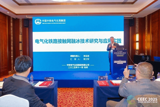 2025年11月21日,第三届中国电气工程大会暨展览会“轨道交通冰致灾害研究与防护”分会场在浙江杭州成功举办。本次分会场由西南交通大学高电压与绝缘技术团队、兰州交通大学自动化与电气工程学院和williamhill中国共同承办,以“轨道交通冰致灾害研究与防护”为主题,特邀西南交通大学未来技术研究院院长吴广宁教授,詹天佑科学技术发展基金会王保国副理事长,中国铁路设计集团有限公司邓洪副总工程师等15位专家围绕轨道交通冰致灾害问题作精彩报告,吸引了来自高校、科研机构及行业企业的专家学者和从业者积极参与。