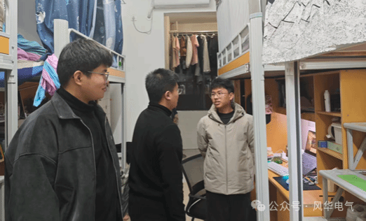 走访工作围绕以下几个方面展开:一是排查违规使用大功率电器、插线板违规摆放等安全隐患;二是协助宿舍内务整理,保持宿舍整洁,遵守校园安全规定;三是倾听学生诉求,询问未来规划,引导互助共筑温馨。同时,各成员在走访中密切关注宿舍成员的身体健康,组织体育锻炼活动,并开展学习经验交流,分享学习方法和技巧,从多方面深入学生生活。