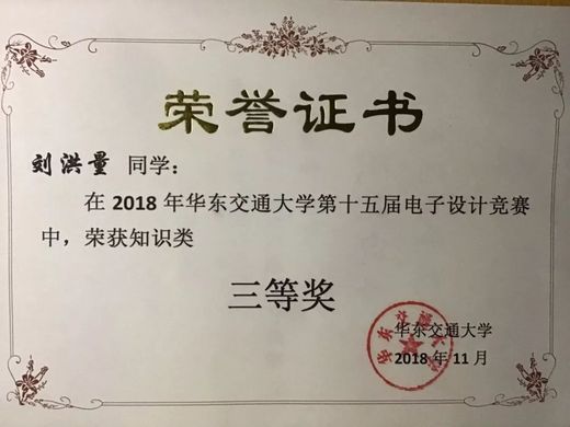 刘洪量,男,汉族,中共预备党员,曾任外联部副部长,在南昌雁翔科技有限公司实习,担任助理工程师一职。拥有3篇论文,2项软件著作权,获电子设计竞赛知识类以及制作类三等奖、双基三维数字化创新设计大赛优秀奖、《当代教育实践与教学研究》优秀论文评比一等奖、优秀学生干部等。