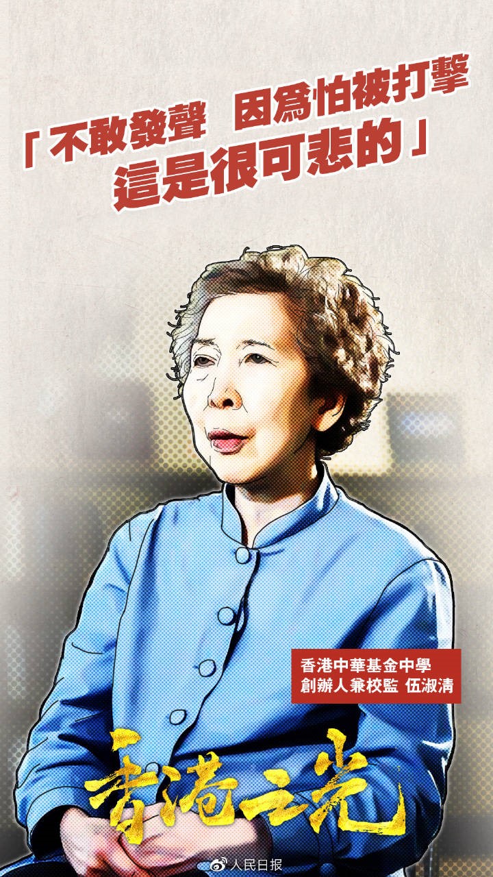 近日,香港各界妇女联合协进会监察顾问、中华基金中学创办人兼校监伍淑清女士在接受媒体专访时表示,“现在很多香港朋友为了保护自己不发声,特别是你看我们商界,很多朋友有很大的企业都不敢发声,因为怕被打击,这是很可悲的。”