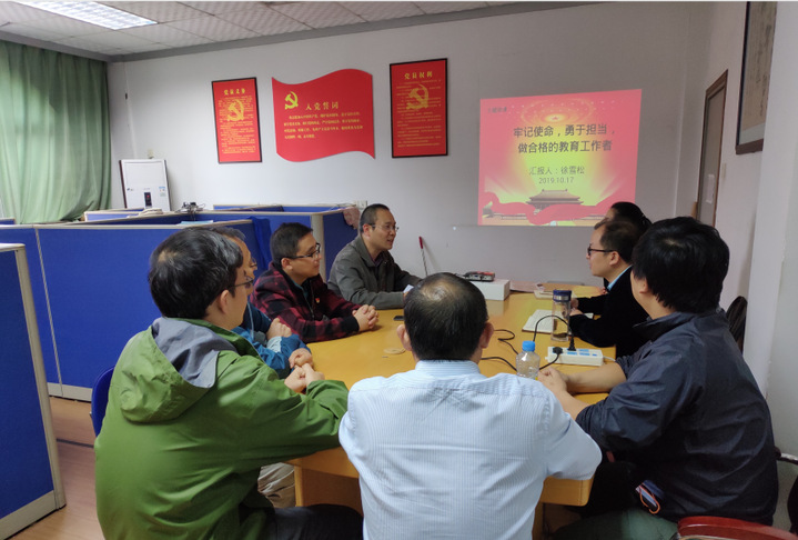 最后,徐雪松向在座的教职工党员们汇报了目前学院双一流的调研情况,他说,学院的学科建设、专业建设、工程认证工作均在按部就班向前推进,整体态势良好的同时,也发现了一些突出的问题,针对这些问题,他同与会人员商讨出了相应的解决思路。他表示,教职工党员要在日常的工作中“找差距、抓落实”,发现自己在工作中存在的不足之处并进行改进和完善,教工党员们要用扎实的知识功底、过硬的教学能力、勤勉的教学态度,肩负起立德树人的使命,为新时代中国特色社会主义培养德智体美劳全方面发展的合格接班人。