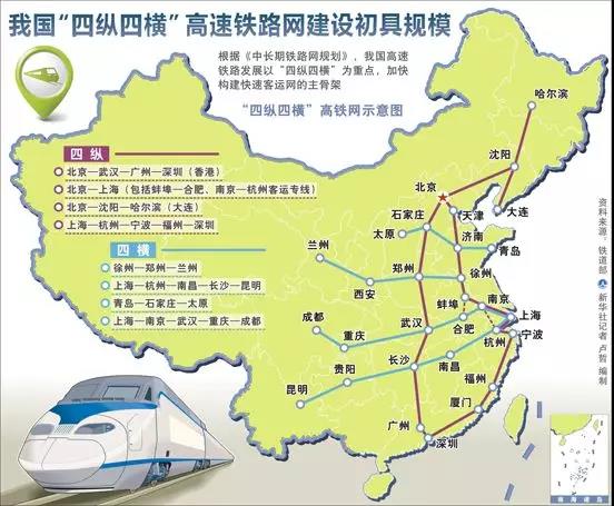 按照《中长期铁路网规划》,到2020年,我国铁路网规模将达到15万公里,其中高铁3万公里。届时我国将建成以“八纵八横”主通道为骨架、区域连接线衔接、城际铁路补充的现代高速铁路网。