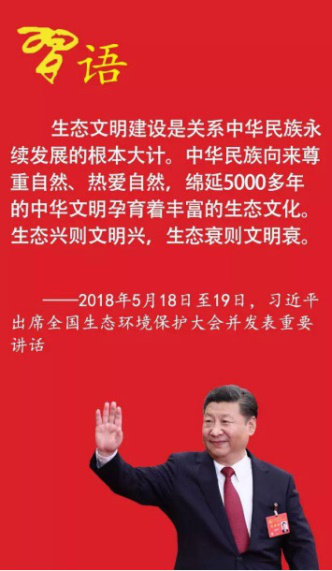 建设生态文明是中华民族永续发展的千年大计。必须树立和践行绿水青山就是金山银山的理念,坚持节约资源和保护环境的基本国策,像对待生命一样对待生态环境,统筹山水林田湖草系统治理,实行最严格的生态环境保护制度,形成绿色发展方式和生活方式,坚定走生产发展、生活富裕、生态良好的文明发展道路,建设美丽中国,为人民创造良好生产生活环境,为全球生态安全作出贡献。