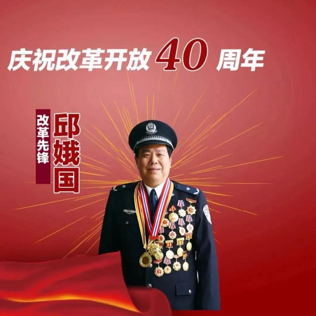 2018年12月18日,庆祝改革开放40周年大会在人民大会堂举行。大会上,中央政治局常委、中央书记处书记王沪宁宣读了《中共中央国务院关于表彰改革开放杰出贡献人员的决定》。决定指出,党中央、国务院决定,授予于敏等100名同志改革先锋称号,颁授改革先锋奖章。邱娥国,便是这100名改革先锋中的一员。从警20年来始终不渝地实践着共产党员和人民警察为人民服务的宗旨,把满腔忠诚倾注于公安事业,把一片深情献给居民百姓。