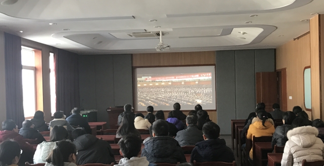 12月18日上午10时,电气学院院长陈世明,党委书记赵敏,党委副书记王巍,副院长徐雪松,院长助理曾建军以及学院各教研室教师于电气楼大会议室集体观看庆祝改革开放40周年大会直播。